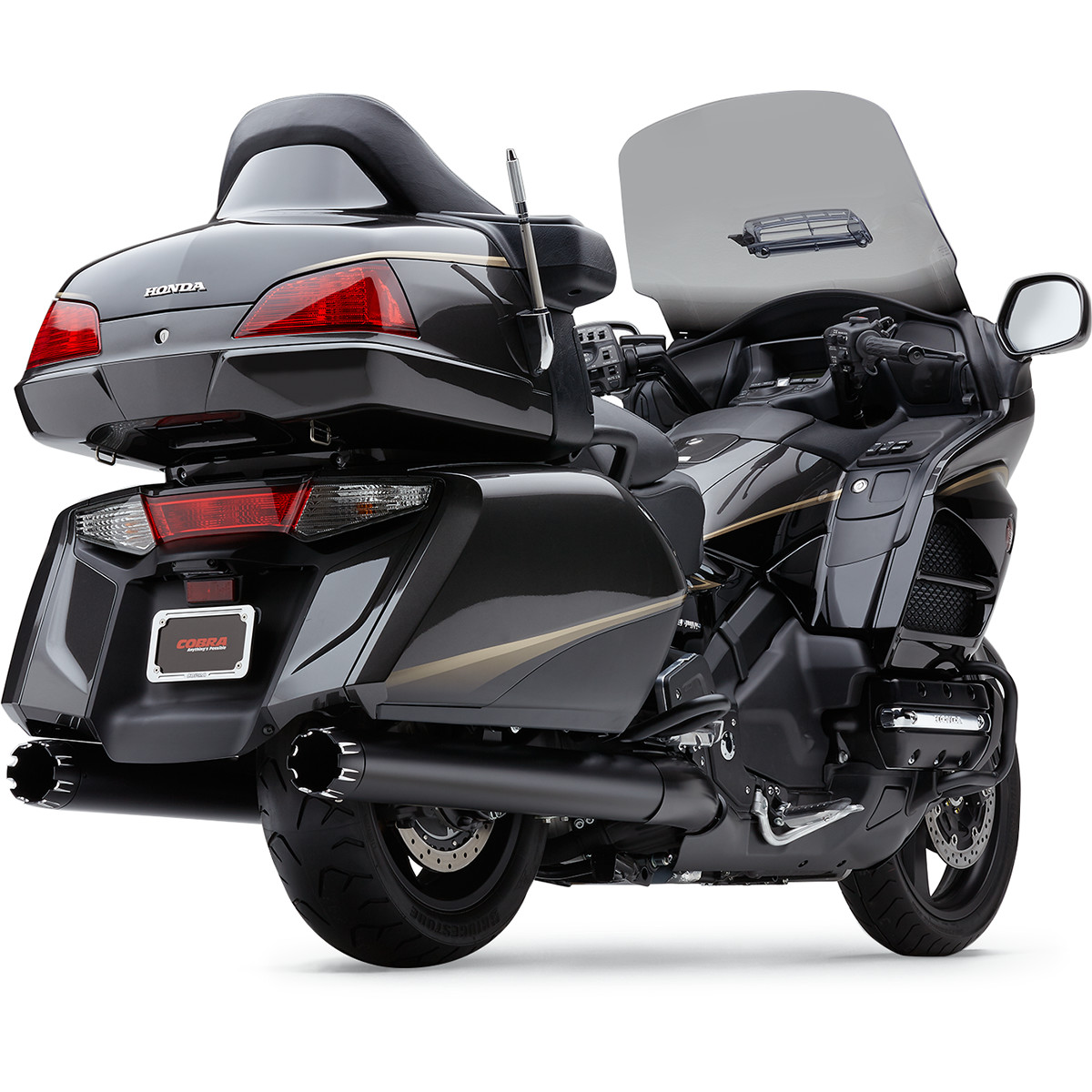 mehr Leistung und Drehmoment vereint mit einem tieferen, aggressiveren Sound Aus Flussstahl gefertigt und anschließend mit einem Beschichtungsverfahren in schwarz veredlet 4" Schalldämpfergehäuse mit Kühlkammer zum Schutz vor Blauverfärbung Mit schwarzen STRAIGHT-CUT Endkappen Inklusive Montagematerial und Anleitung für eine problemlose Montage Hergestellt in den USA Leider ohne TÜV passend für GL 1800 2012-2016